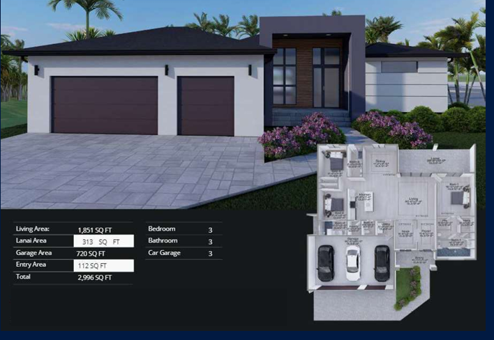 Villa luxueuse floridienne de plain-pied, avec cuisine entièrement équipée, ouverte sur grand living room et véranda, 3 chambres, 2 salles de bain, chambre master avec dressing et salle de bain. Air conditionné. Garage triple ou utilisation de l'espace pour votre Jet Sky, ou matériel de pèche ou de plage. Finitions premium soignées.